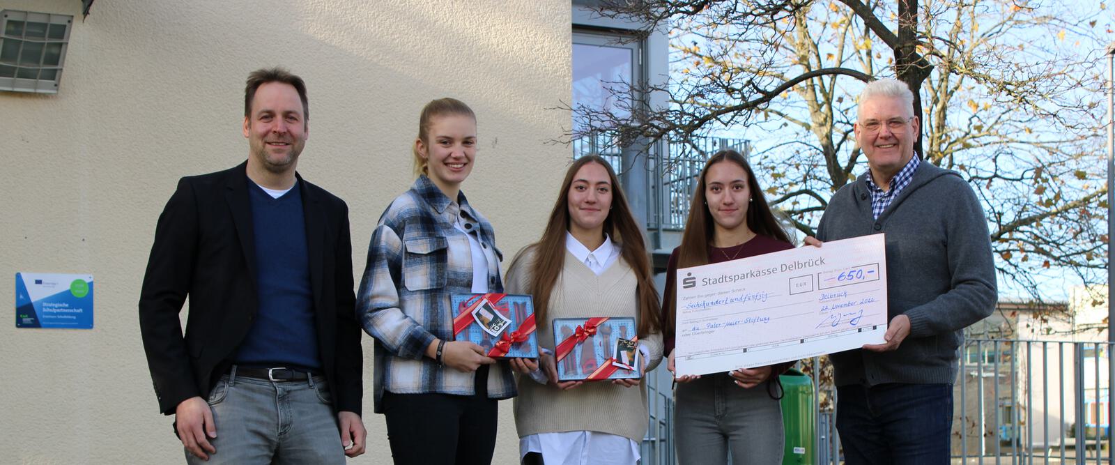 An der Gesamtschule (GED) wurde GEDübelt statt gegrübelt: Die Abiturientia 2023 sammelte an einem „sozialen Tag" insgesamt 1.300 Euro. Die Hälfte des Geldes in Höhe von 650 EURO überreichte der Abiturjahrgang - vertreten durch die fleißigsten Sammlerinnen Adela und Amela Lugonjic sowie Madeleine Troja - nun dem Vorsitzenden der Pater-Meier-Stiftung, Werner Peitz.